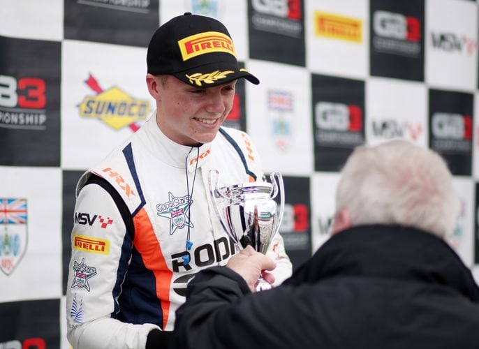 Callum Voisin was in high spirits leaving Silverstone after reclaiming the GB3 Championship lead from Hitech Pulse-Eight’s Alex Dunne.